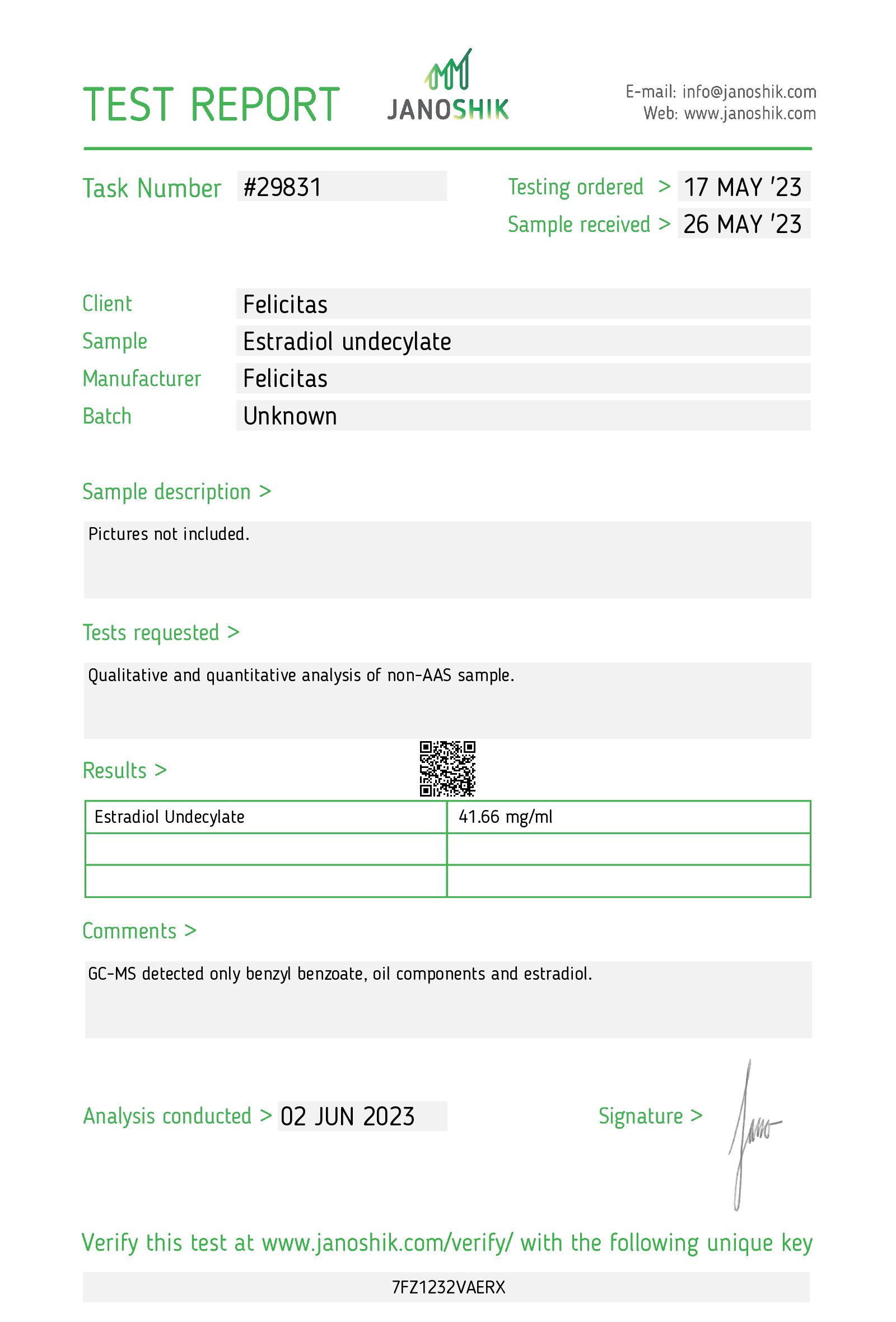 • Janoshik verification key: 7FZ1232VAERX
